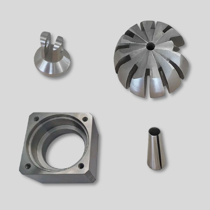 Примеры деталей после электроэрозионной обработки: контурная резка, пазы и сложные профили.